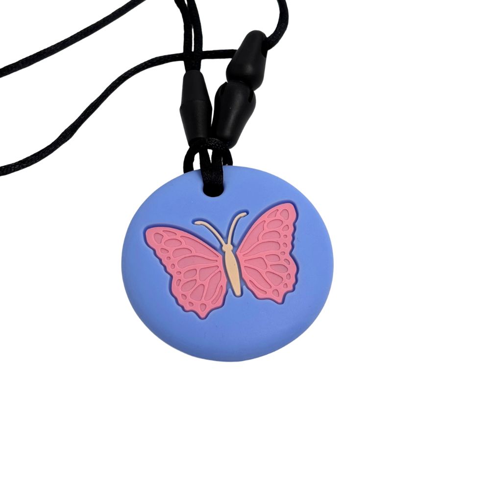 Designed to provide calm, safe sensory support, the Butterfly Silicone Chew Pendant offers gentle oral input in a stylish, wearable form. Featuring a dual-textured design, the front has a slightly raised butterfly pattern while the back is textured for varied sensory feedback.
