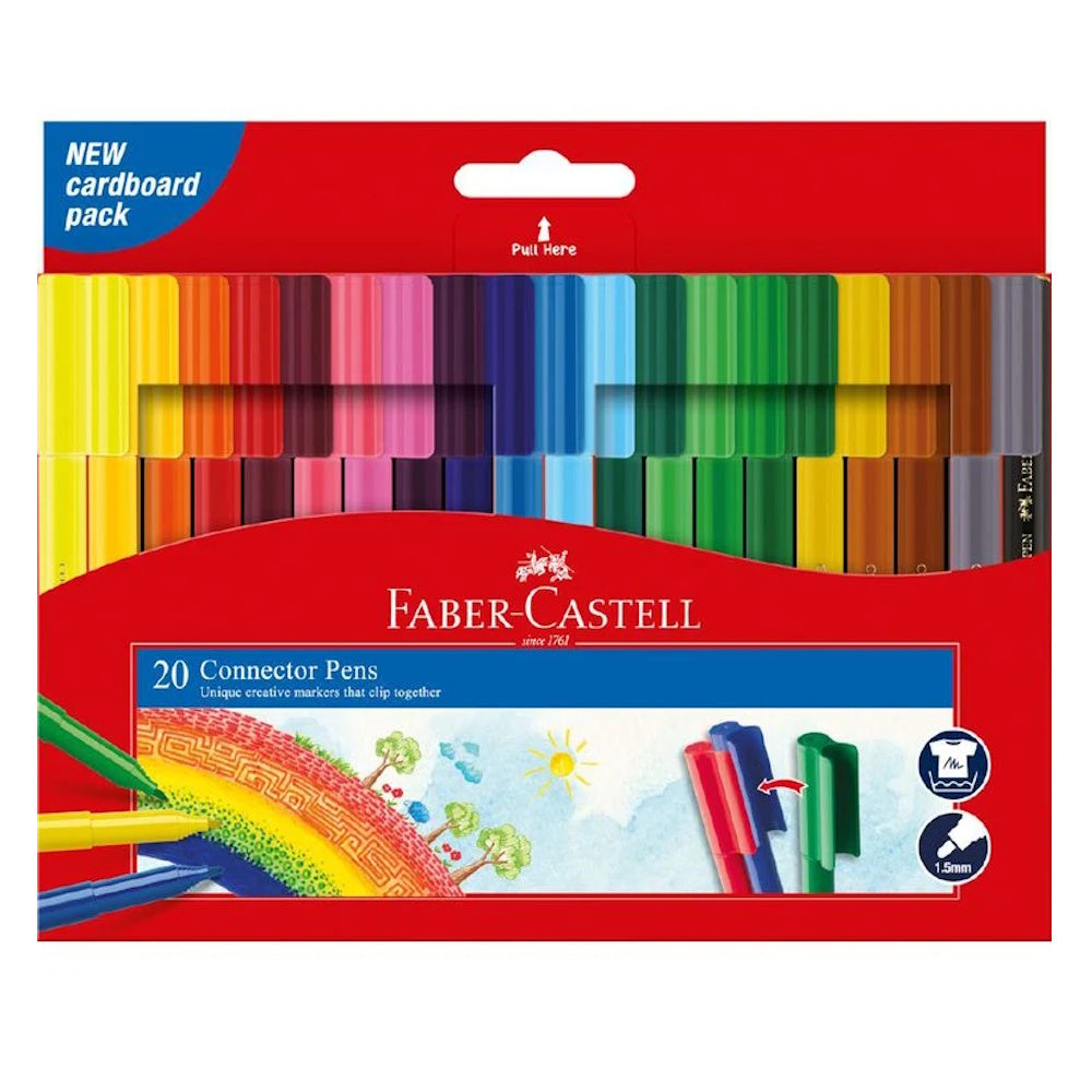 Faber Castell Connector Pen markers paint bright and strong and even have an extra playful benefit: connecting the caps provides many possibilities for games, crafts, and cleanup.