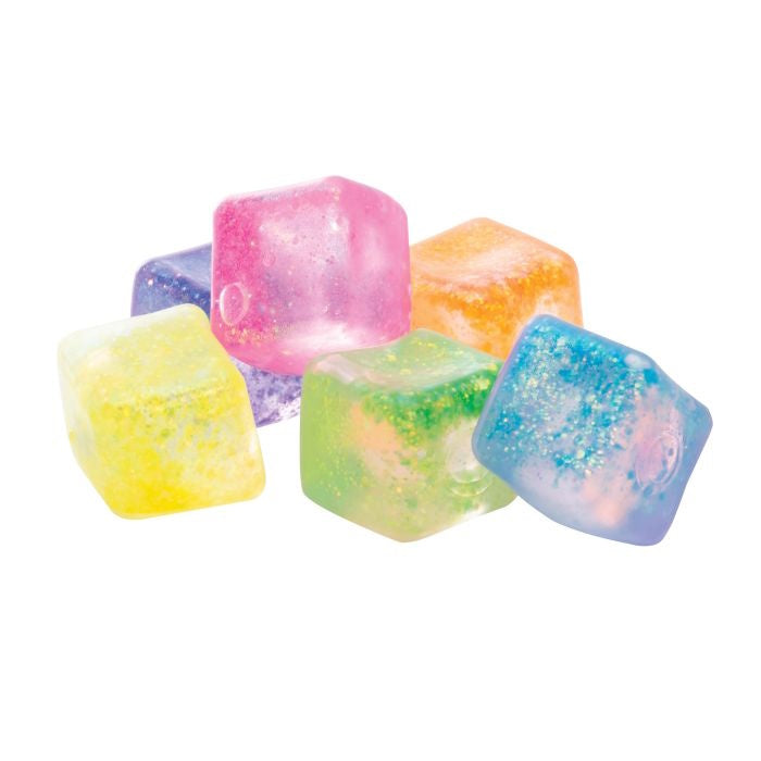 Each cube features a soft, squishy feel with glittery accents. Great for sensory play or just a moment of stress relief, the Sparkly Squish Cube is a fun and tactile way to unwind.