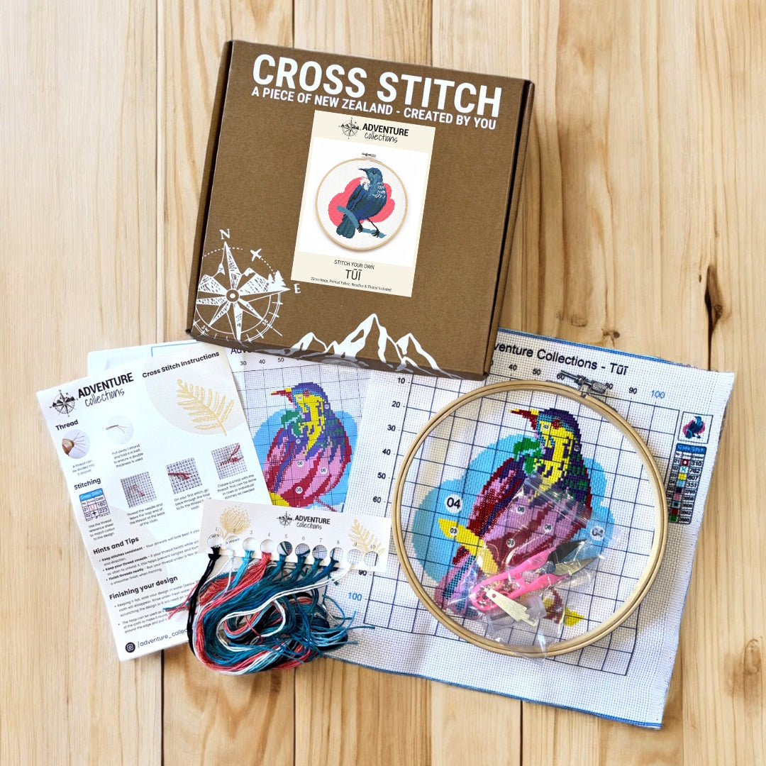 Relax, create, and bring a little piece of New Zealand to life with this charming Tui Cross Stitch Kit from Adventure Collections. Designed for ages 10+, it’s perfect for beginners and experienced stitchers alike—ideal for anyone wanting to slow down and enjoy a mindful, creative moment.