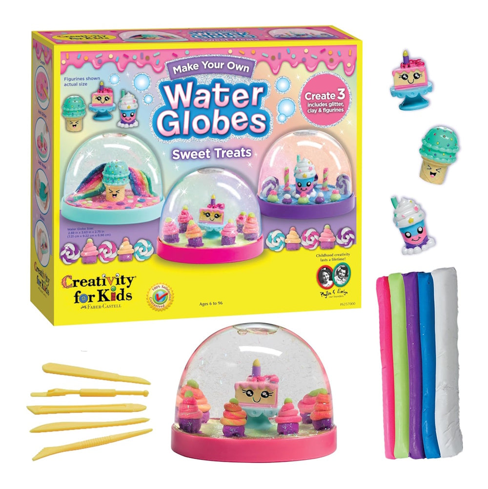 Create three adorable dessert-themed snow globes with the Creativity for Kids Make Your Own Water Globes – Sweet Treats kit!