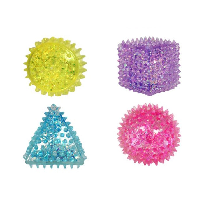 These glittery shapes offer a satisfying squish! Squeeze and feel the sensory spikes for a fun, calming experience.